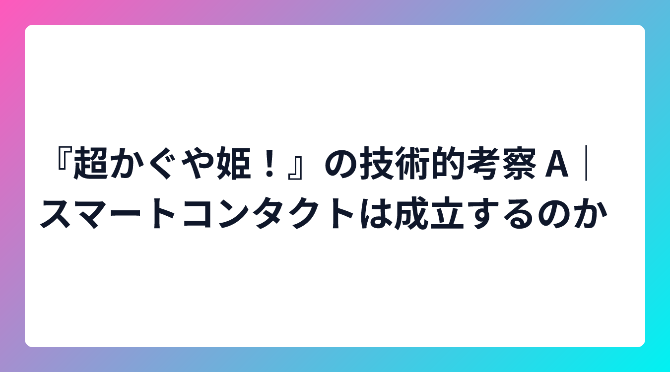 『超かぐや姫!』の技術的考察 A|スマートコンタクトは成立するのか